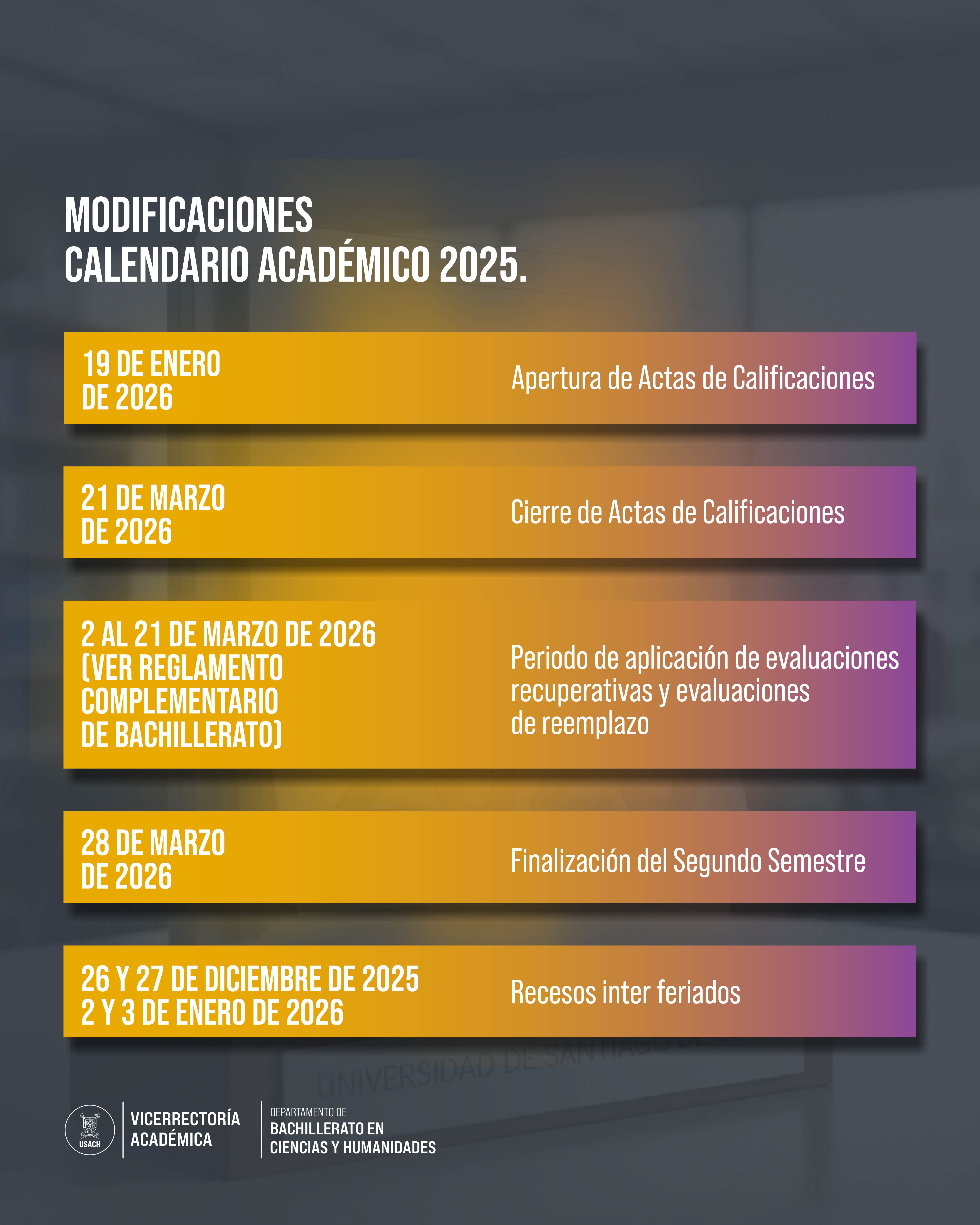 MODIFICACIONES CALENDARIO ACADÉMICO 2025.